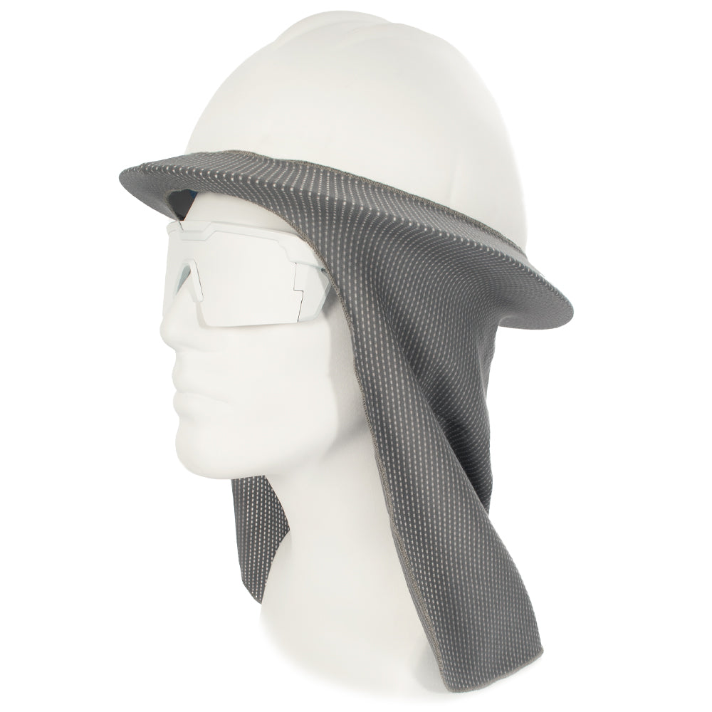 Feel the breeze. The GOAT Flex Sol Shade let's you do just that. Made from the greatest FR micro-mesh knit which allows air to flow without restriction. The ultra-lightweight knit is made from a blend of cotton, cellulose fibers, poly & spandex so it feels soft and cool to the touch. Constructed to fit wide format hard-hats, you can easily pull and stretch the Sol Shade onto your brim without too much fuss. Invisible silicon backing prevents slipping and sliding. Will not block your peripheral vision, but will protect your ears & neck from sun exposure.