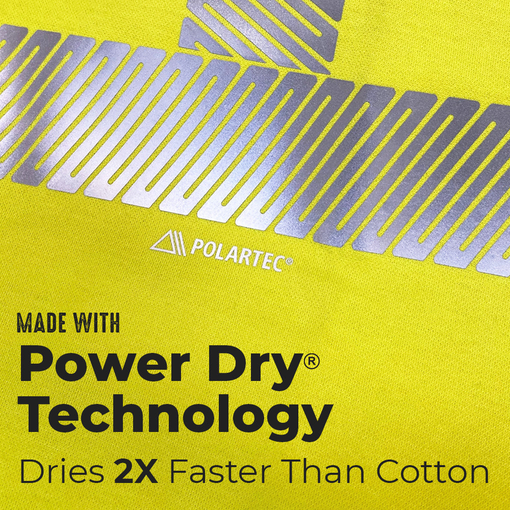 Made by Benchmark FR in the United States using PolarTec Power Dry Modacrylic/ Lyocell/ Aramid Blend (Yellow) and 2nd Gen FR Cotton (Gray)